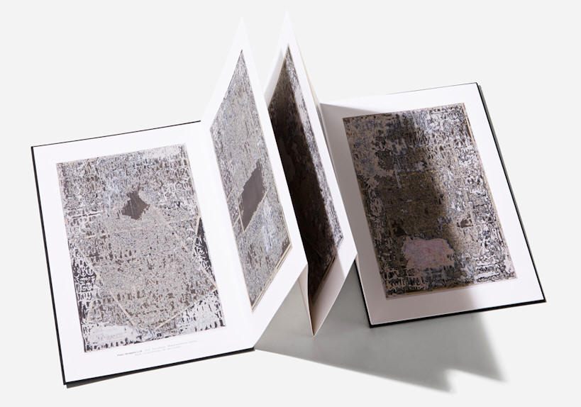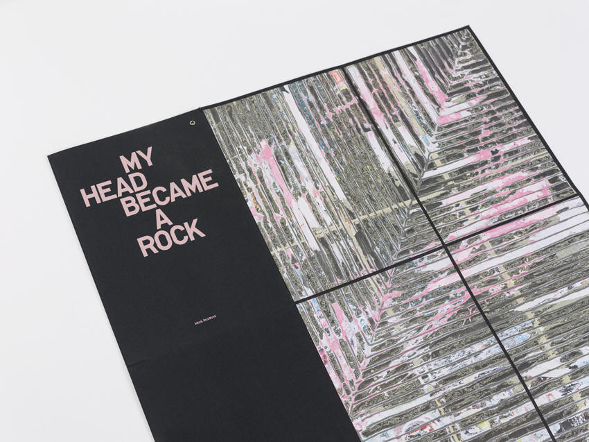 MY HEAD BECAME A ROCK, artists' book presented in a linen-bound slipcase, including fold out reproduction of mixed media collage on canvas work, 107.8 x 98.4 cm. /42.4 x 38.7 inches, edition 100*, signed and numbered by the artist, 2014