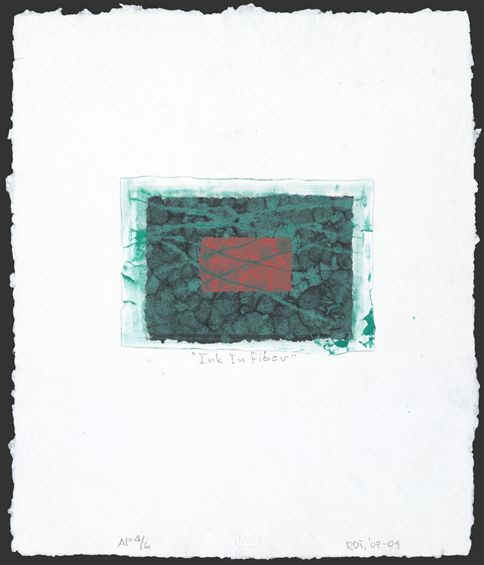 Fiber, hammered copper plate on Handmade dyed paper, 13 1/4 x 11 1/4 inches