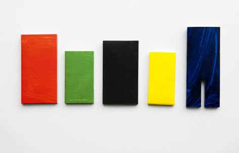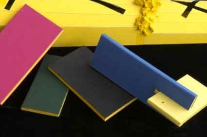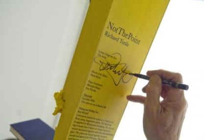 NotThePoint is composed of five differently coloured, hand-bound books with letterpress printed texts on handmade paper. Each of the five books focuses on the source of each colour’s origin within the ideal context of human experience. The books are held upright in an elaborately crafted holding-case of pigmented sycamore wood and cardboard which has been dyed yellow. The publication was created by Richard Tuttle. The director of the edition is Elena Foster. Miranda Sharp recorded and transcribed the text. Rob Hadrill manufactured the holding case and printed the books. Lori Sauer was the bookbinder. Lorraine Wild designed the typography. The edition is numbered and signed by the artist.