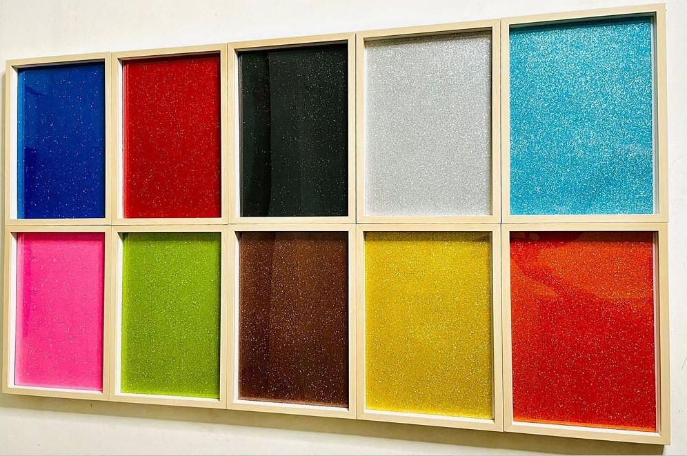 please notice reflections can be seen in the works. This is due to the glass of the frame.