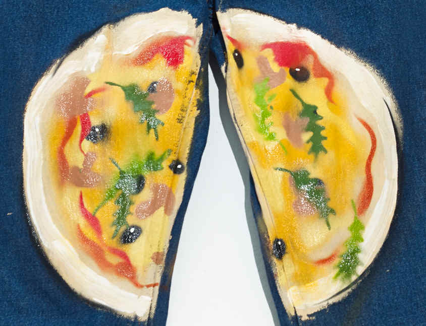 pair of trousers with unique painting,