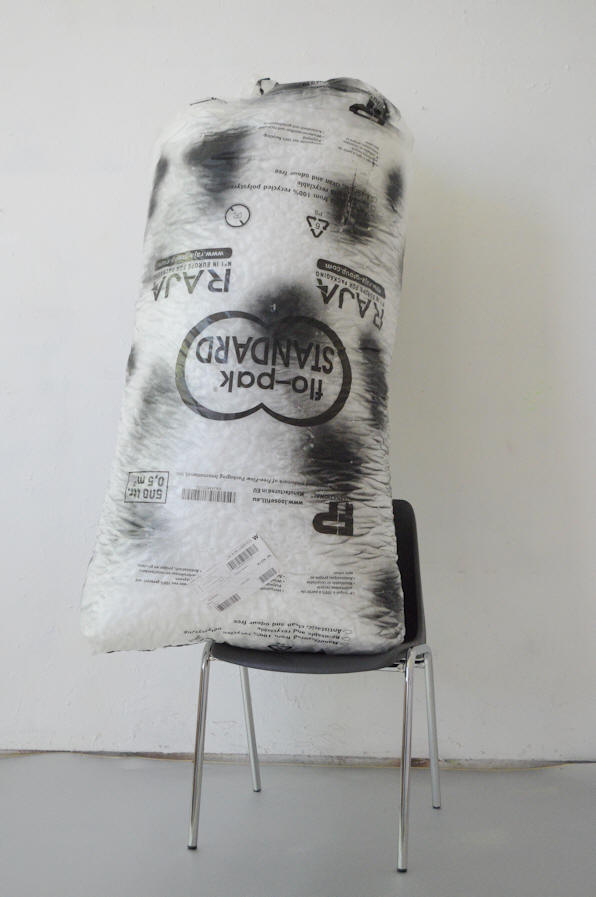 sack filled with styrofoam protective material, acryl spray-paint, 185 x 70 x 80