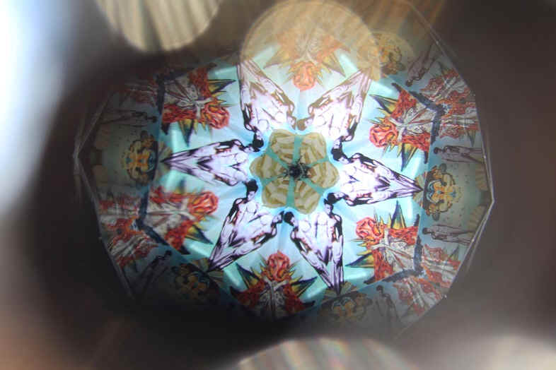object, cast brass, digitally printed cotton, lacquer, mirror, lens, glass,