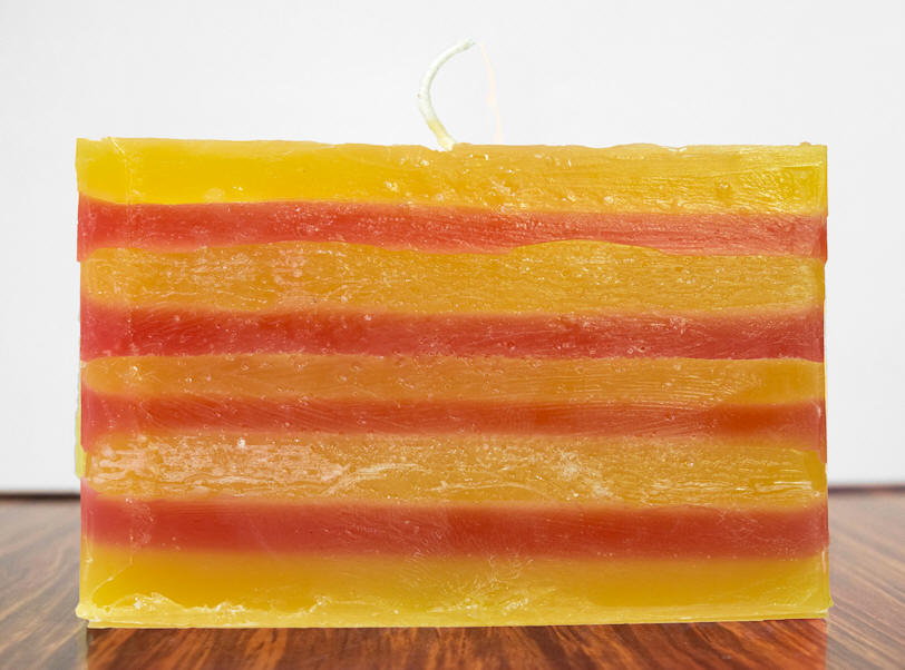 Burn a flag: Catalonia, object, durable parafine (approximate burning time is 16 hours), 10 x 6.6 x 2.5 cm. /3.9 x 2.6 x 1 inches, edition 20, signed and numbered (carved) by the artist, 2017