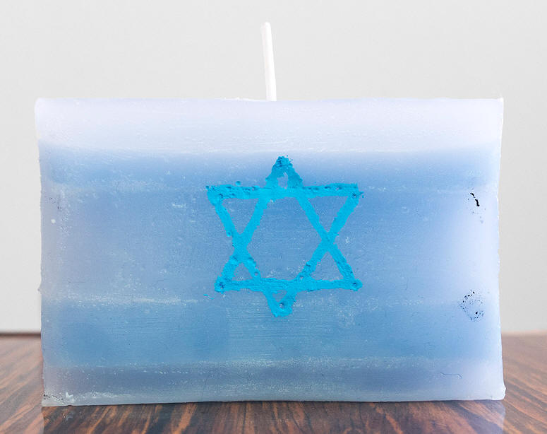 Burn a flag: Israel, object, durable parafine (approximate burning time is 16 hours), 10 x 6.6 x 2.5 cm. /3.9 x 2.6 x 1 inches, edition 20, signed and numbered (carved) by the artist, 2017