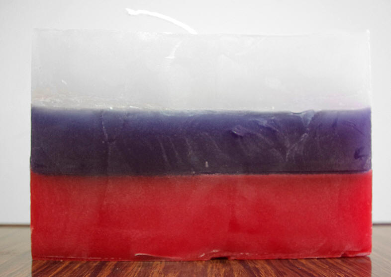 Burn a flag: Russia, object, durable parafine (approximate burning time is 16 hours), 15 x 6.6 x 2.5 cm. /5.9 x 2.6 x 1 inches, edition 20, signed and numbered (carved) by the artist, 2017