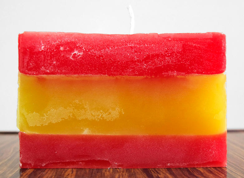 Burn a flag: Spain, object, durable parafine (approximate burning time is 16 hours), 10 x 6.6 x 2.5 cm. /3.9 x 2.6 x 1 inches, edition 20, signed and numbered (carved) by the artist, 2017