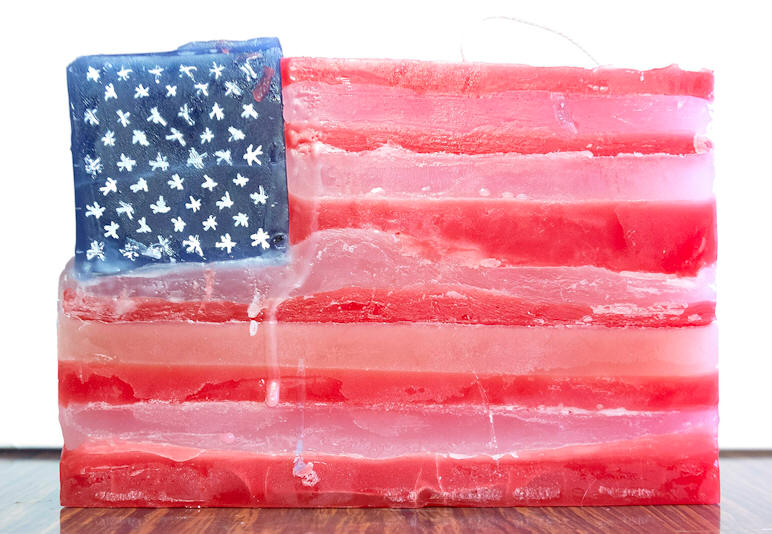Burn a flag: USA, object, durable parafine (approximate burning time is 16 hours), 15 x 6.6 x 2.5 cm. /5.9 x 2.6 x 1 inches, edition 20, signed and numbered (carved) by the artist, 2017