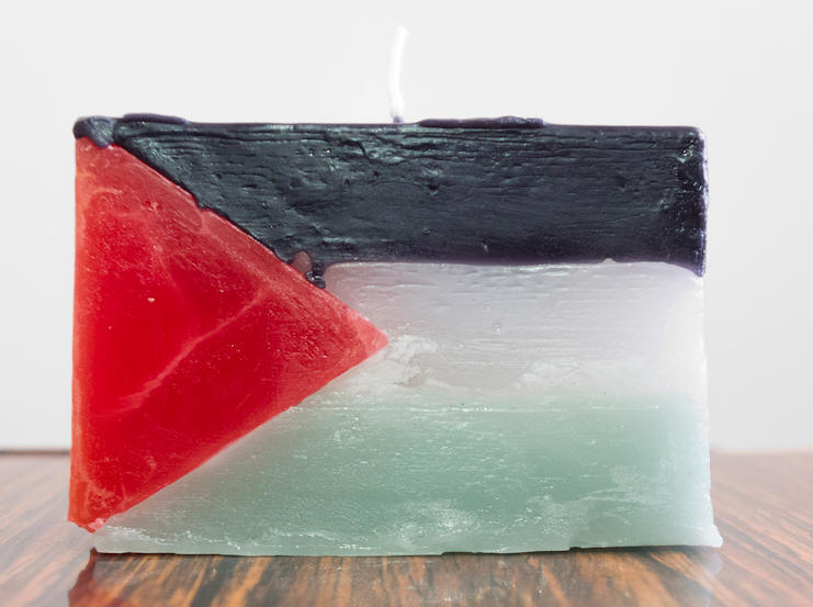 Burn a flag: Palestine, object, durable parafine (approximate burning time is 16 hours), 10 x 6.6 x 2.5 cm. /3.9 x 2.6 x 1 inches, edition 20, signed and numbered (carved) by the artist, 2017