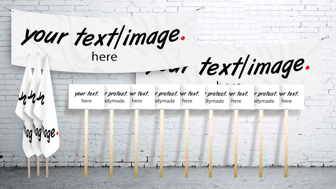 Protest banner, protest flag, protest sign, various sizes, each in an edition 20, each signed and numbered by the artist, 2017